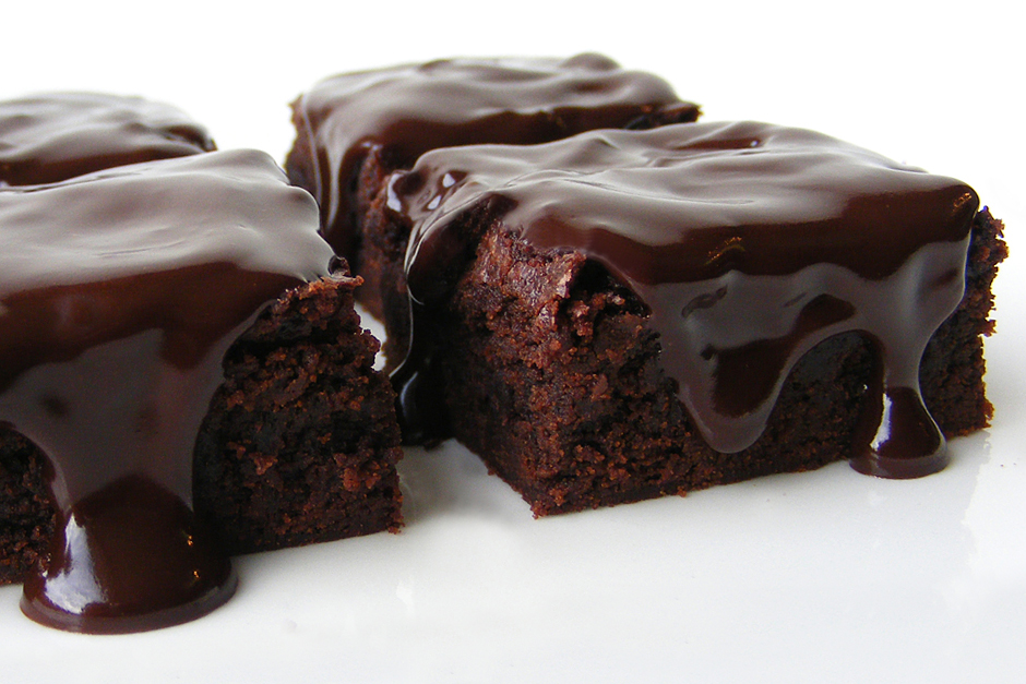 Цей надзвичайно популярний десерт зазвичай подають розрізаними на квадрати. У ці шоколадні тістечка можна додавати колоті горіхи (мигдаль, фундук, волоські, фісташки), печиво, свіжі фрукти або цукати і навіть шматочки білого шоколаду.