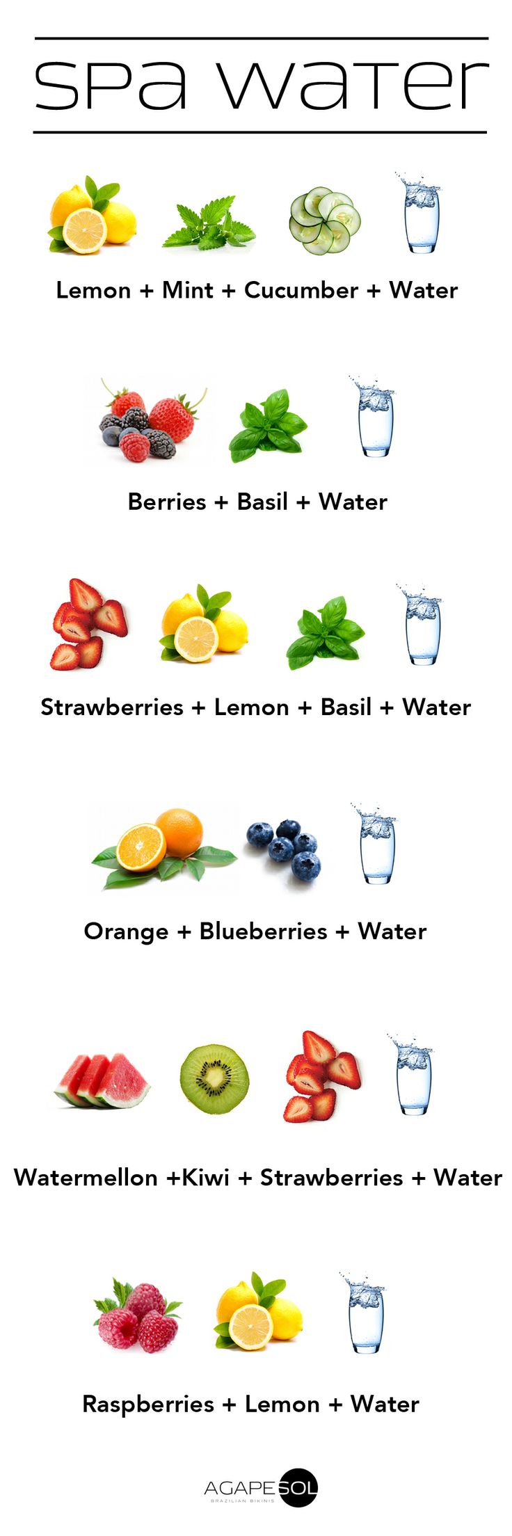 Загальні принципи приготування будь-якої фруктової води: фрукти нарізаються невеликими, не надто дрібними шматочками, заливаються водою і настоюють в холодильнику одну-дві години. Всі пропорції вказані в розрахунку на 1 літр води.