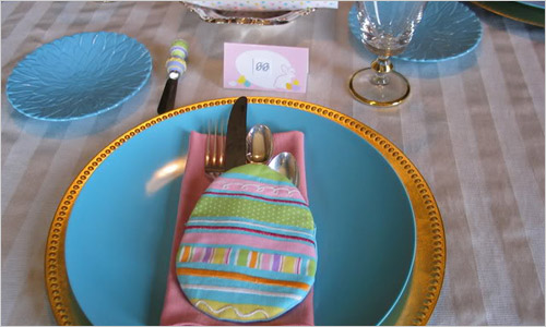 Символами Великодня вважаються яйця, птахи, гнізда, кролики, квіти, зелень – все те, що символізує природу, весну, відродження і пробудження. Ці символи можуть стати красивою прикрасою великоднього столу. Навіть фарбовані яйця, якими, за традицією, обмінюються у Великдень, можна використовувати як елемент декору. Їх можна покласти у гніздо, споруджене зі штучного зеленого моху або сіна, або низьку скляну вазу. Також ви можете купити серветки із зображенням великодніх яєць, або вишити писанку на чохлах для столових приборів.